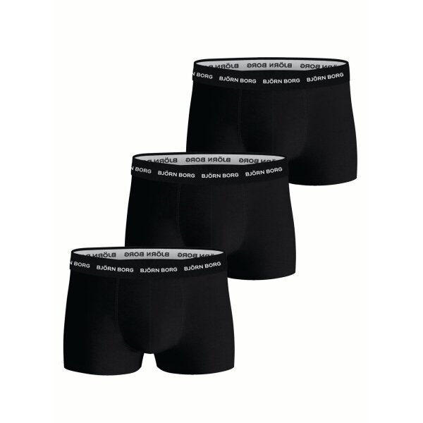 BJÖRN BORG Herren Trunks, 3er Pack - Unterhose, Shorts, Baumwolle, Logobund, einfarbig Schwarz/Dunkelblau/Weiß L