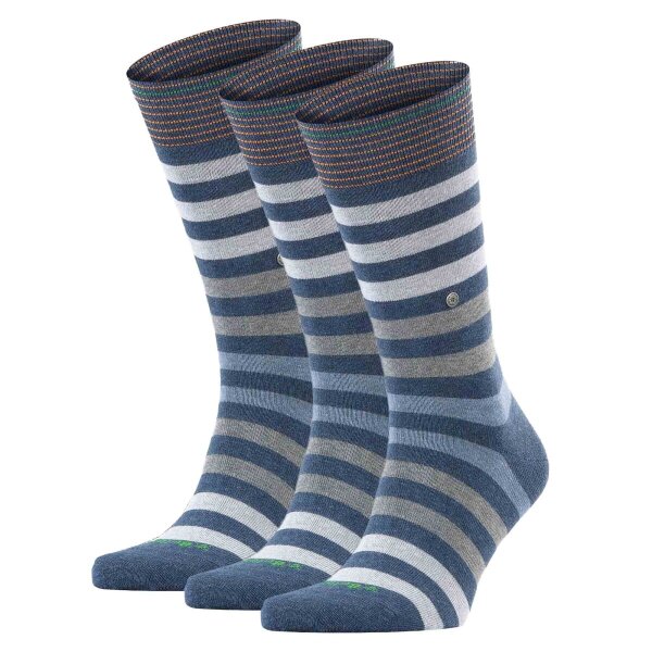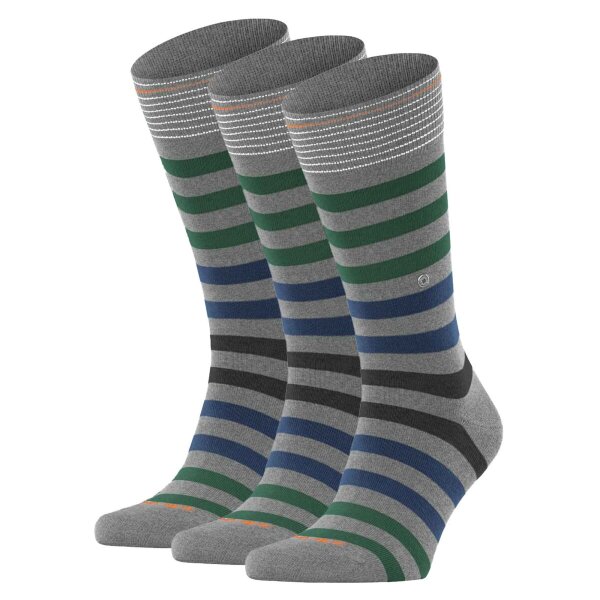 Burlington Herren Socken 3er Pack - Blackpool, Baumwolle, Streifen, Logo, One Size Bordeaux/Rot 40-46