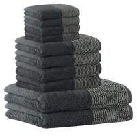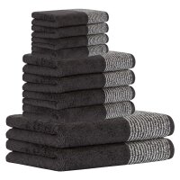 • Lieferumfang: 10 Teile (2 Duschtücher, 4 Handtücher, 4 Gästetücher)