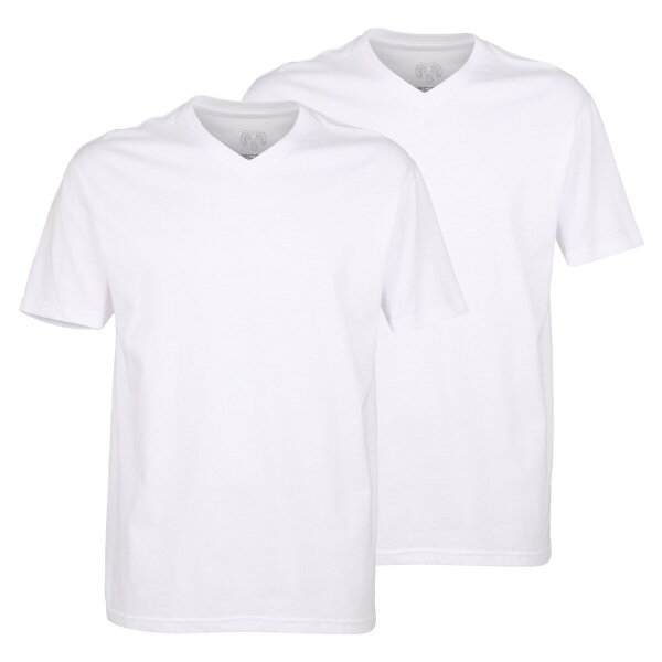 CECEBA men's T-shirts, 2-pack - convex, V-neck, short-sleeved, cotton, plain-coloured White L (Large)