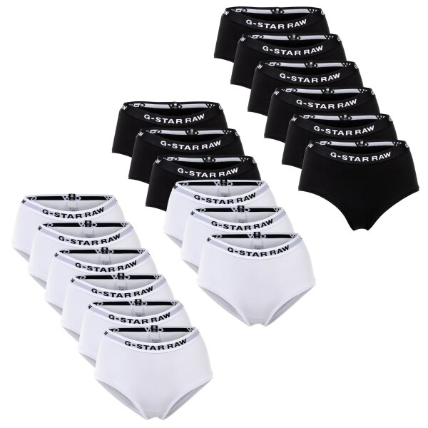 G-STAR Damen Hipster Slips, 6er Pack - Hipster, Cotton Stretch, Logo, einfarbig Schwarz/Weiß XS
