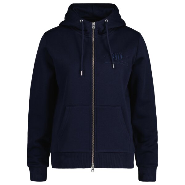 GANT Ladies Sweat Jacket - REGULAR SHIELD ZIP HOODIE, Hooded Jacket, Logo Blue XS (X-Small)