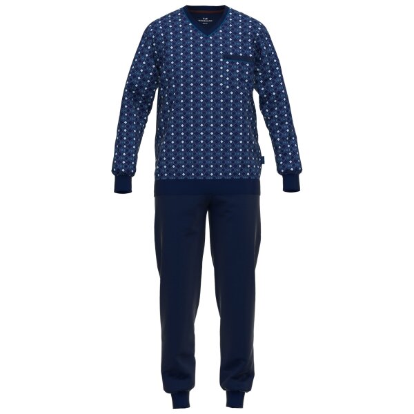 GÖTZBURG Herren Schlafanzug - lang, Bündchen, Pyjama, Baumwolle, Muster, V-Ausschnitt