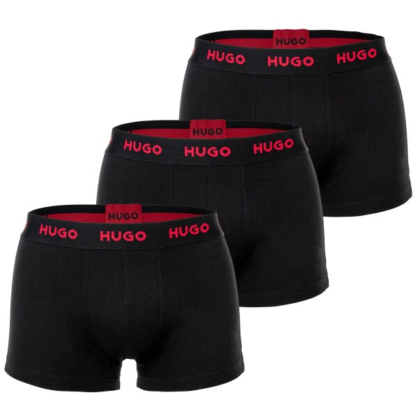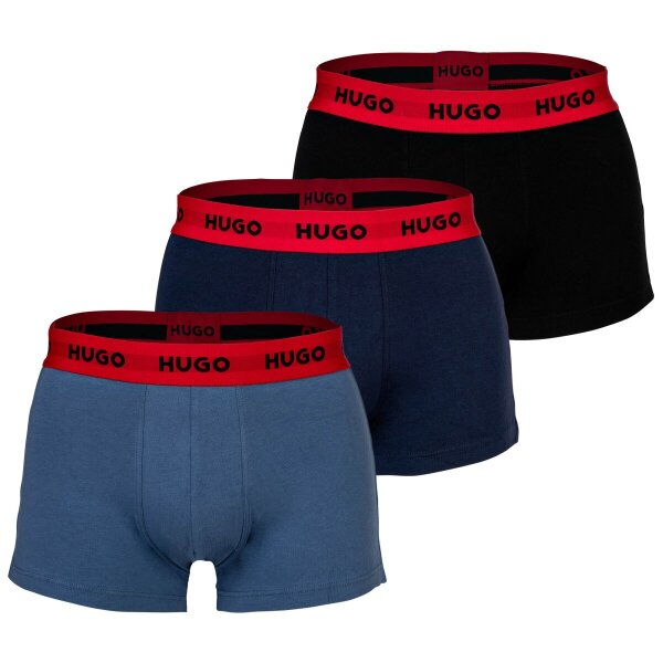 HUGO Herren Boxershorts, 3er Pack - Trunk Triplet, Cotton Stretch, Logo Schwarz/Rot/Blau/Grau M
