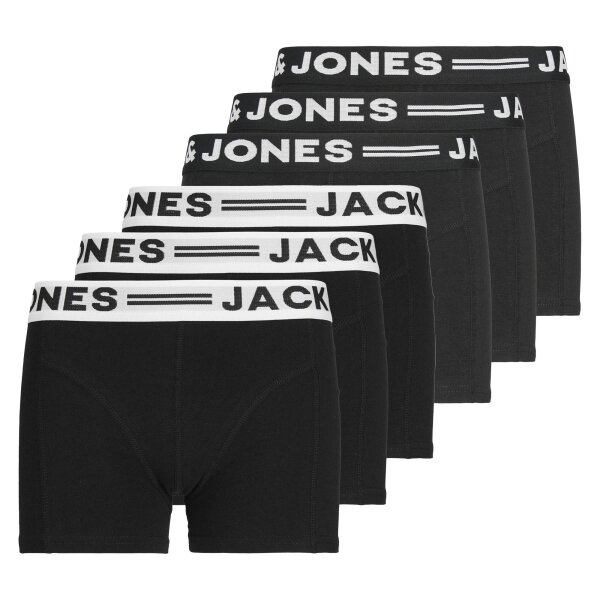 JACK & JONES Boy's Boxer Shorts, Pack of 6 - SENSE TRUNKS, Cotton Stretch, Logo Waistband Black/black/white 176