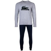 LACOSTE Men's Pyjama set, 2-Piece - Loungewear, Pyjamas, long, Round Neck, Logo Grey/Dark Blue L (Large)