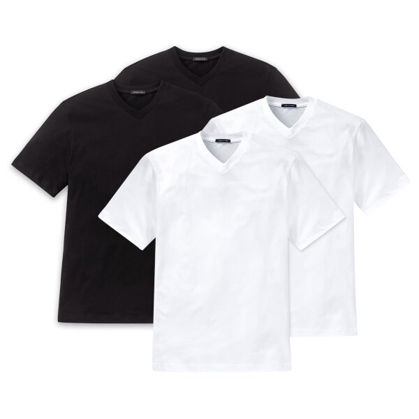 SCHIESSER Herren American T-Shirt 4er Pack - 1/2 Arm, Unterhemd, V-Ausschnitt SchwarzWeiß 3XL