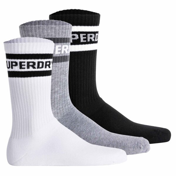 Superdry Unisex Sportsocken, 3er Pack - COOLMAX SPORT CREW SOCK 3PK, Logo, Streifen Weiß 36-38