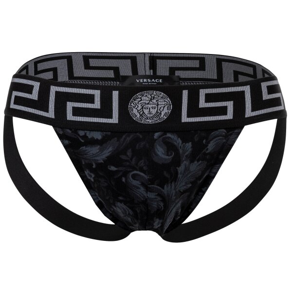 VERSACE Men's Jockstrap - Jocks, Tanga Briefs, Stretch Cotton, Barocco Pattern Black/Grey 3XL (XXX-Large)