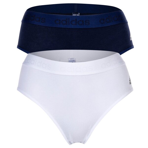 adidas Damen Slip, 2er Pack - Bikini Slip, Smart Cotton Solid, Logo, uni Blau/Weiß XS